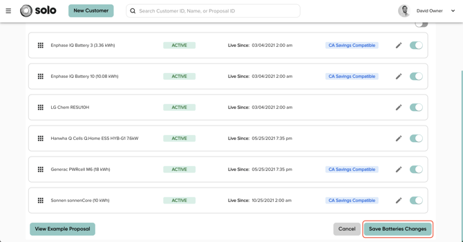 In the MissionControl, you are able to customize your battery offering: