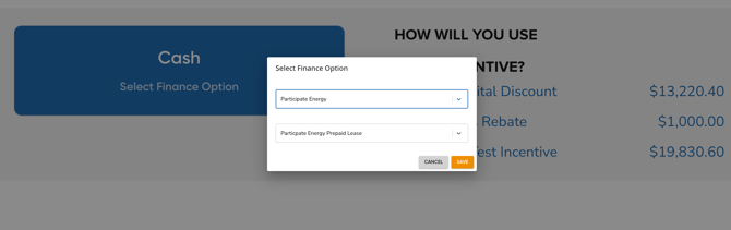 To use Participate Energy as the financing option, follow the steps below: