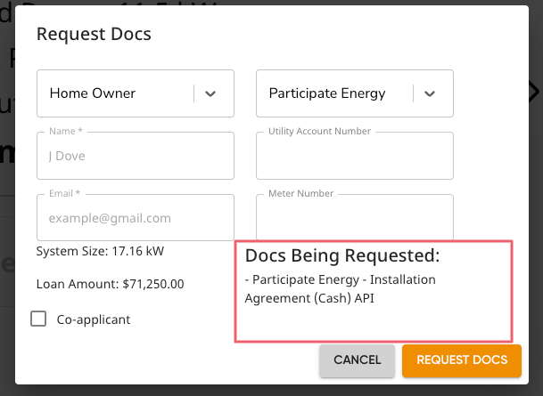 - Use the Participate Energy install partner to generate and send the correct agreement(s).