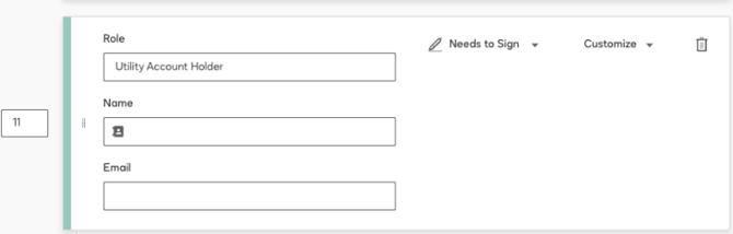 - To add a signer for when the utility account holder is not the homeowner or the co-applicant, add a Utility Account Holder with a signing order of 11.