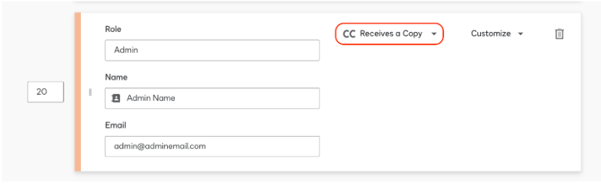 - To add a user who should receive a copy but does not need to sign, add an Admin with a signing order of 20.