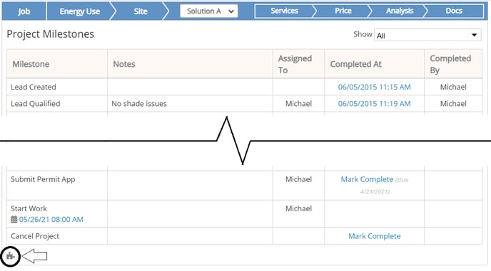 - Job 2 - SolarNexus removes milestone B and adds milestone A'. When A' is completed, milestone B will be populated.