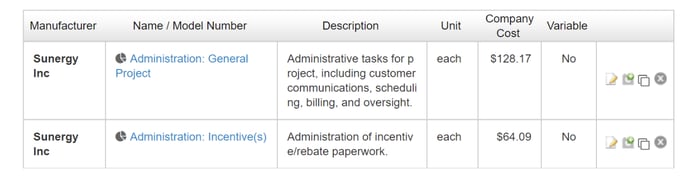 SolarNexus pre-defines a number of commonly used service offerings that can be copied into your Company's account from the Service Offerings screen. See the Creating and Managing Service Offerings for more about this. If you will use cost item pricing, you will want to review the default unit costs pre-populated into the cost items copied to your account. SolarNexus provides a Google worksheet that you can use to calculate unit costs for these product items, and you can edit/input your own unit cost rates (as described below).