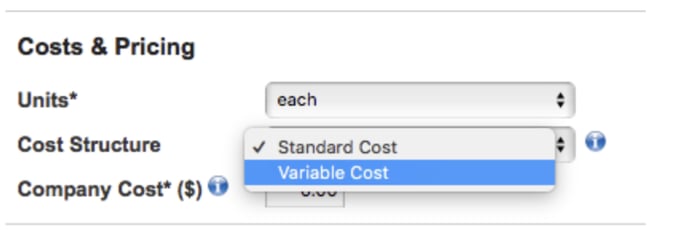 - Find the field labeled "Cost Structure" and change it to "Variable Cost"
