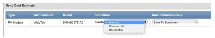 From there, when the rep is using that particular equipment and syncs the cost estimate they'll be able to select the condition you created: