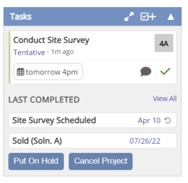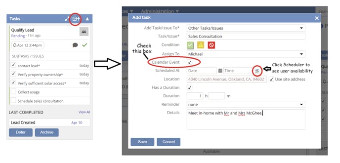 To schedule a Sales Consultation, The user would click the Add Task icon and define a "Sales Consultation" subtask as a scheduled event in the Other Tasks card as shown above.