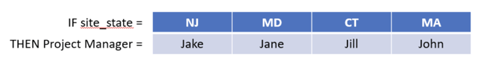 You can apply business rules to determine which specific user is assigned to a given role on a job. For example, let's say that you wanted to assign a project manager to each job based on the state in which the job will be installed. You can define these rules: