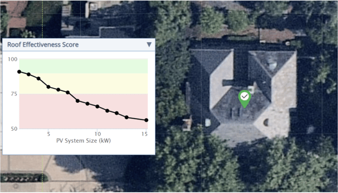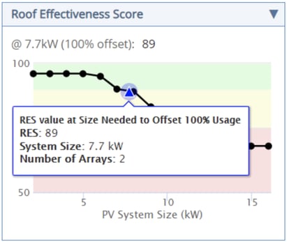 The Roof Effectiveness Score (RES) is a feature exclusive to SolarNexus. Using only an address, the RES gives you an objective measure of a given roof's effectiveness for a PV system installation. The RES is a ratio comparing the effectiveness of your prospective customer's roof to an ideal roof for this location. It can be used in the earliest stages of lead qualification, when only the site location is known.